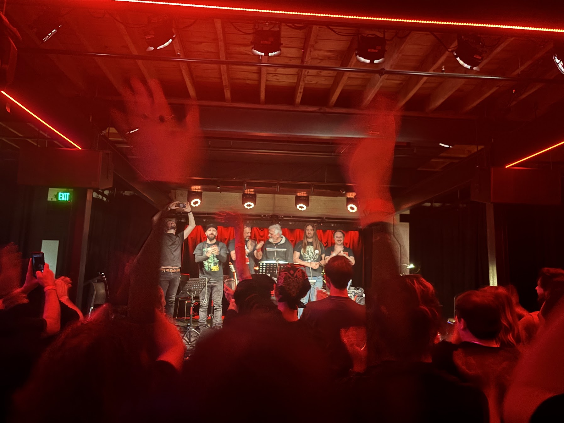 Clearly, there was an eager audience for live music underneath a film where a zombie fights a shark.