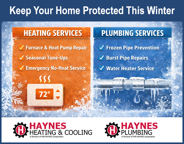 When winter problems strike, you shouldn’t have to juggle multiple contractors. MB HAYNES offers both HVAC and plumbing services under one roof, making it easier to keep your home safe and comfortable.
