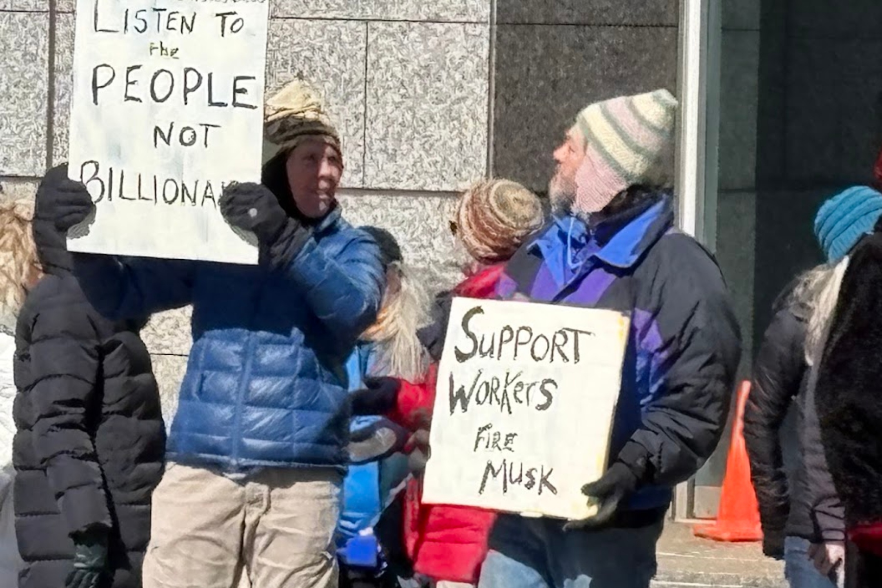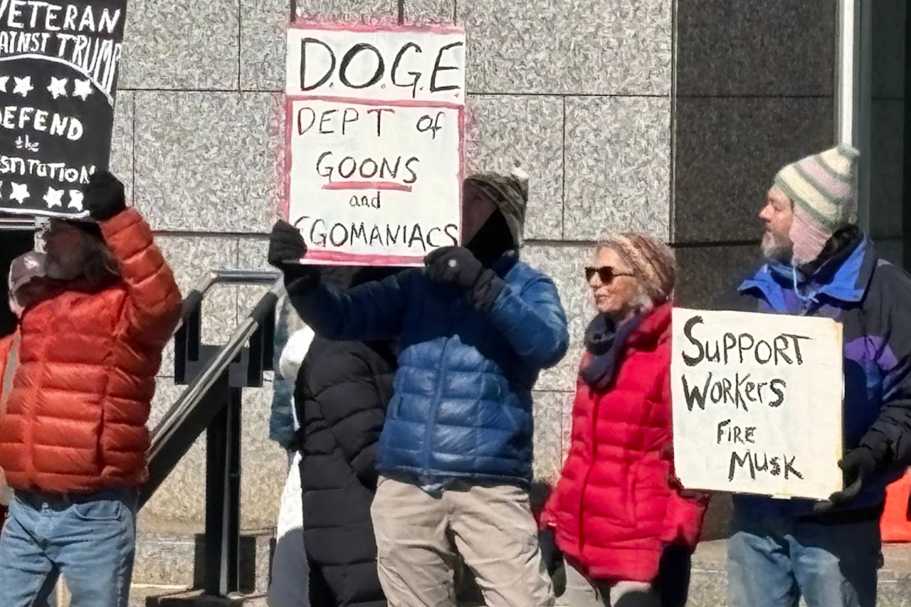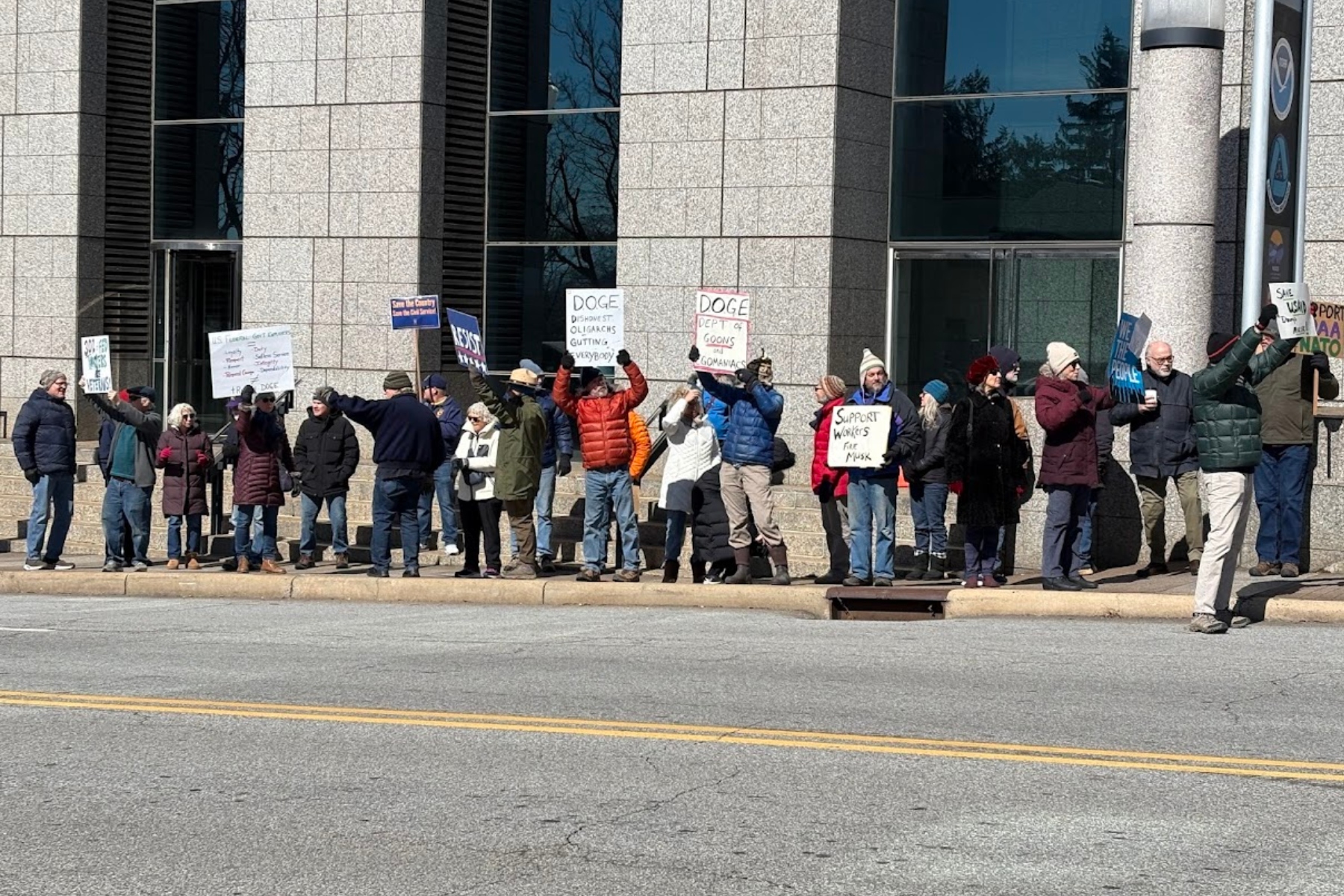 Those questions and many others were posed by the dozens of people gathered in front of the Veach-Baley Federal Building in Asheville on Friday, Feb. 21, 2025, protesting the recent firings of thousands of federal employees.
