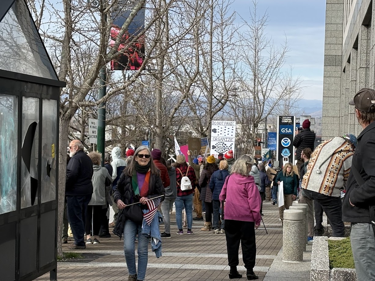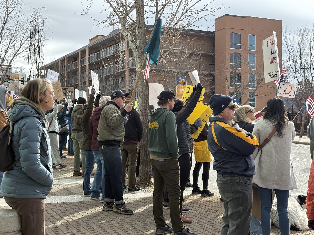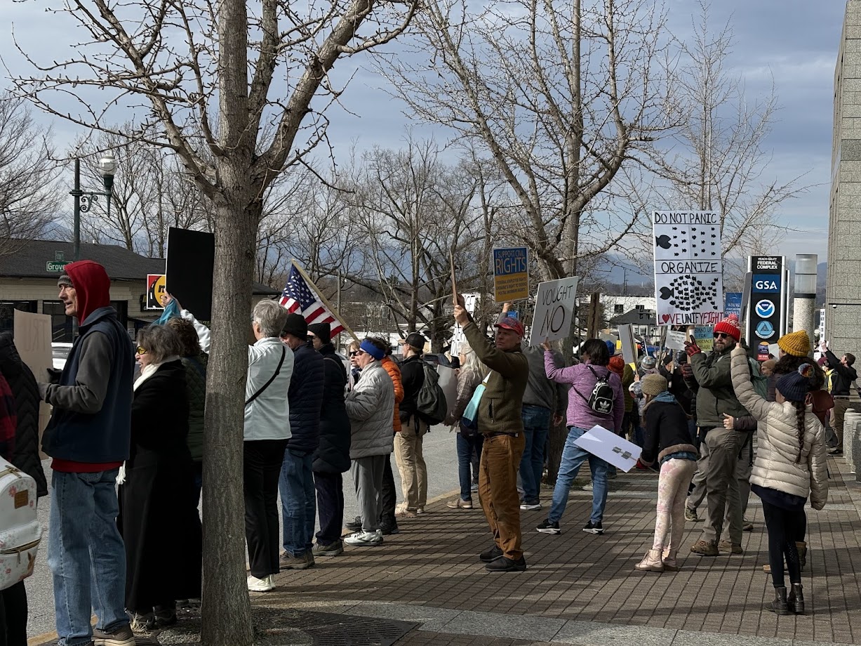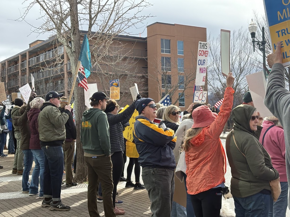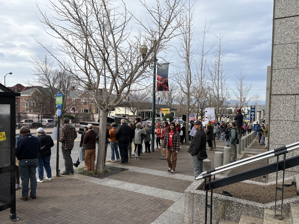 ASHEVILLE, N.C. (828newsNOW) — Hundreds of protesters gathered outside the Veach-Baley Federal Building in Asheville on Tuesday morning, condemning the Trump administration’s slashing of the federal government.