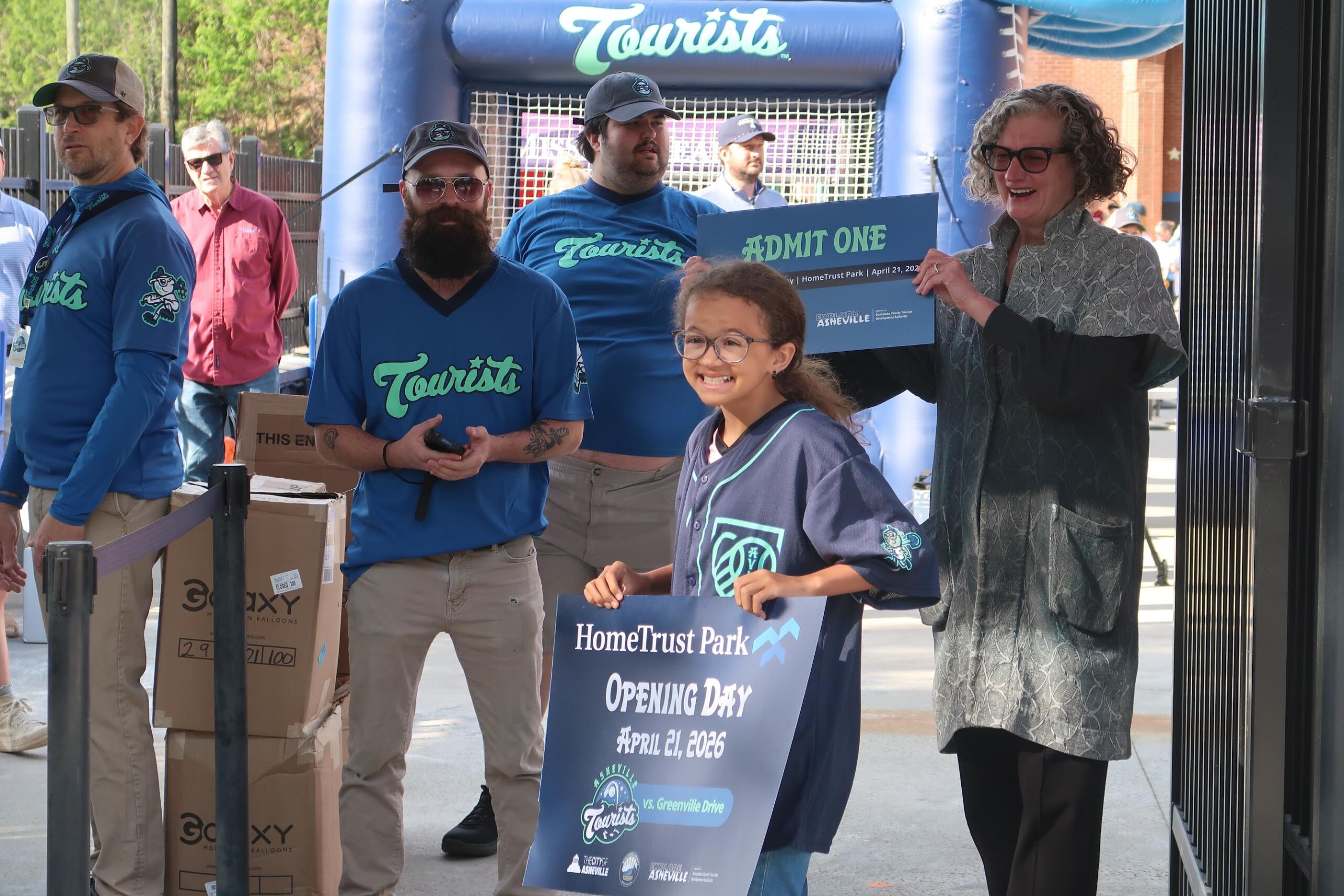 In addition to their programs, many guests carried baseballs, too. According to an Asheville Tourists Baseball Club Facebook post, the first 1,500 fans to walk through the gates received a commemorative opening night baseball, courtesy of HomeTrust Bank.