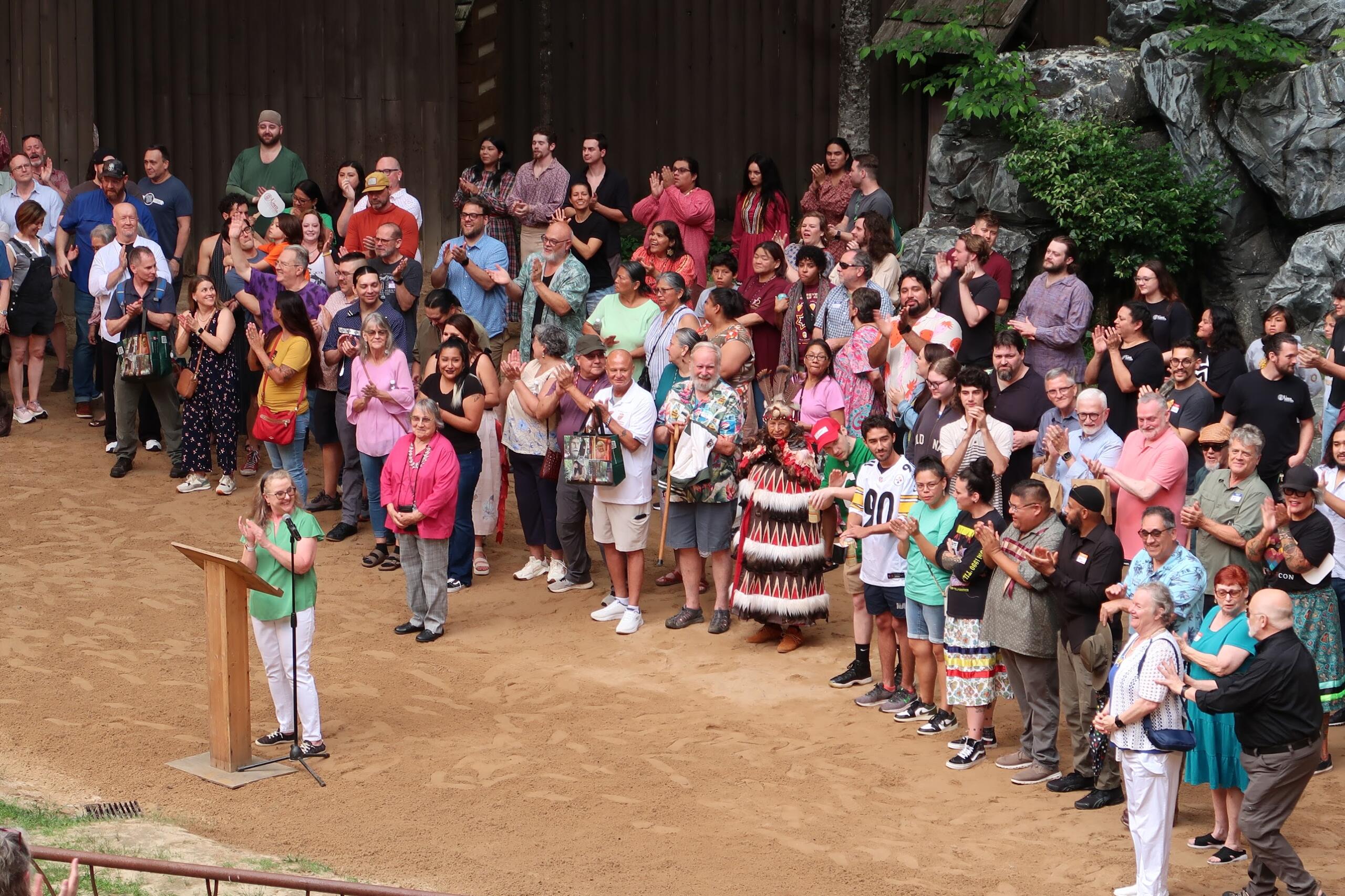 The most arresting thing about the show is its scope, from the size of the auditorium itself to the ranks of the cast. The massive Mountainside Theatre, carved into the side of a ridge and sloping down to its large, multi-tier stage, seats nearly 3,000 people, while the ensemble cast of “Unto These Hills” includes more than 70 actors, nearly half of which are members of the EBCI. The show spans centuries, comprised of vignettes from Cherokee history ranging from European contact in the 16th century all the way to Cherokee removal in the 1830s.