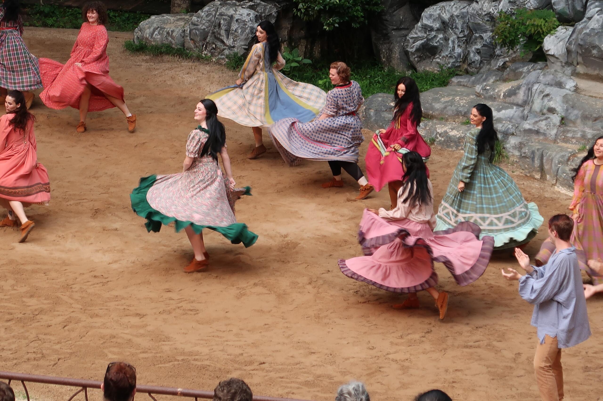 The less successful parts of the show came when it leaned too heavily on the original 1950 script by playwright Kermit Hunter. While the show has been updated over the years, focusing more on Cherokee characters and adding in more Cherokee language, Hunter’s words were clunky for many of the actors onstage. While the voice-of-god narration is grandiose and gorgeous – a Hunter trademark, as seen in his other famed outdoor drama, “Horn in the West,” still performed in Boone, N.C. – other vignettes were ungainly and cumbersome. However, thanks to several of the performers’ skillful comic timing, the humor of the show came through, even if the more dramatic dialogue felt leaden.