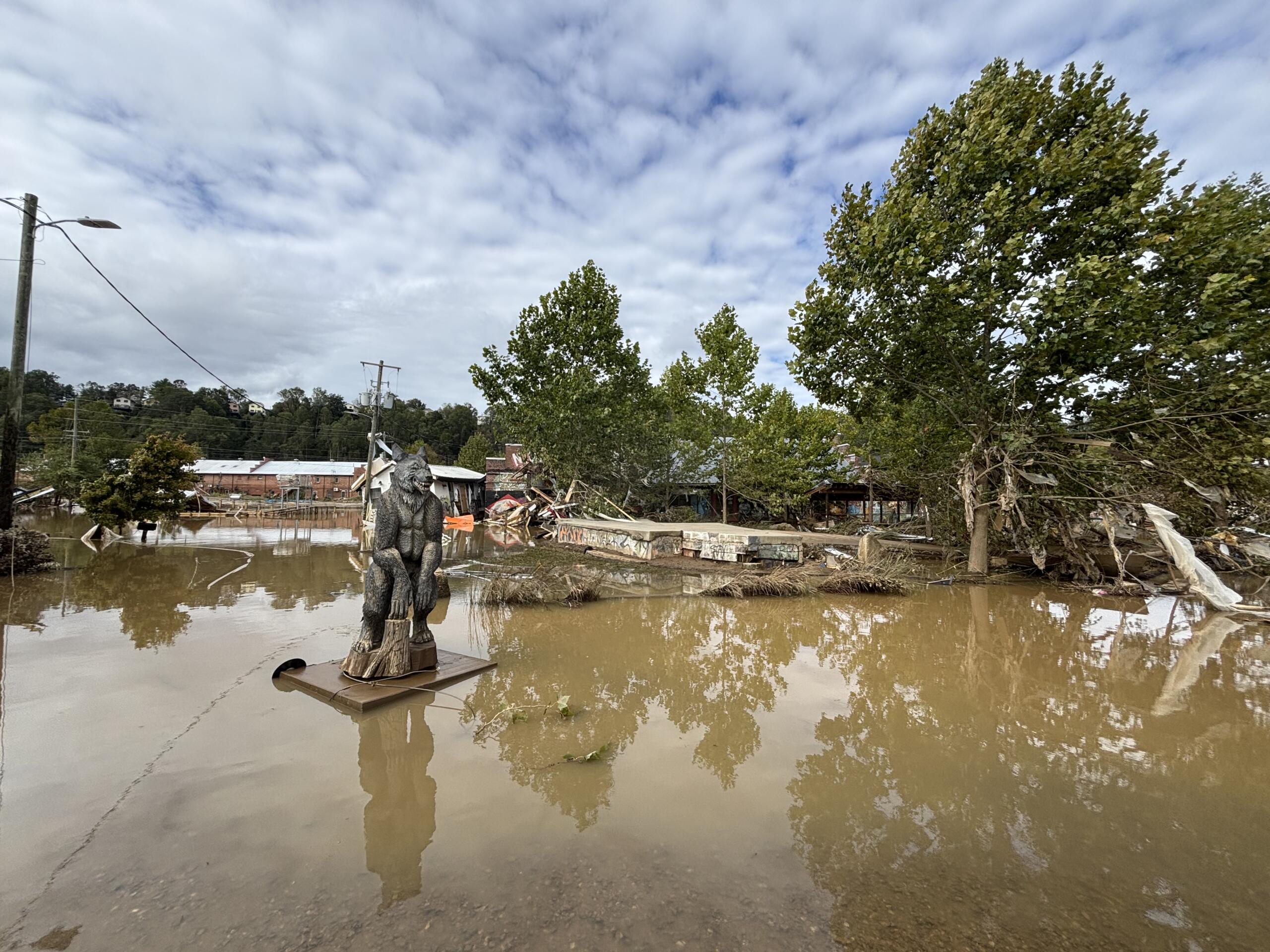 In the middle of it all, a werewolf statue stood grimacing at the flood. It still stands in its ferocity just as the city of Asheville remains around it.