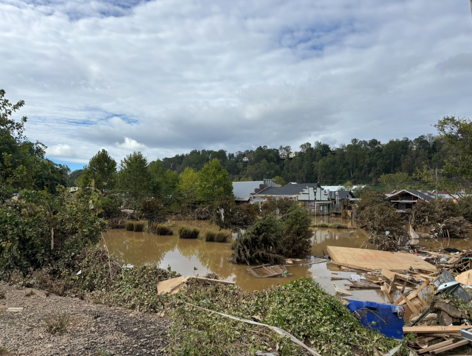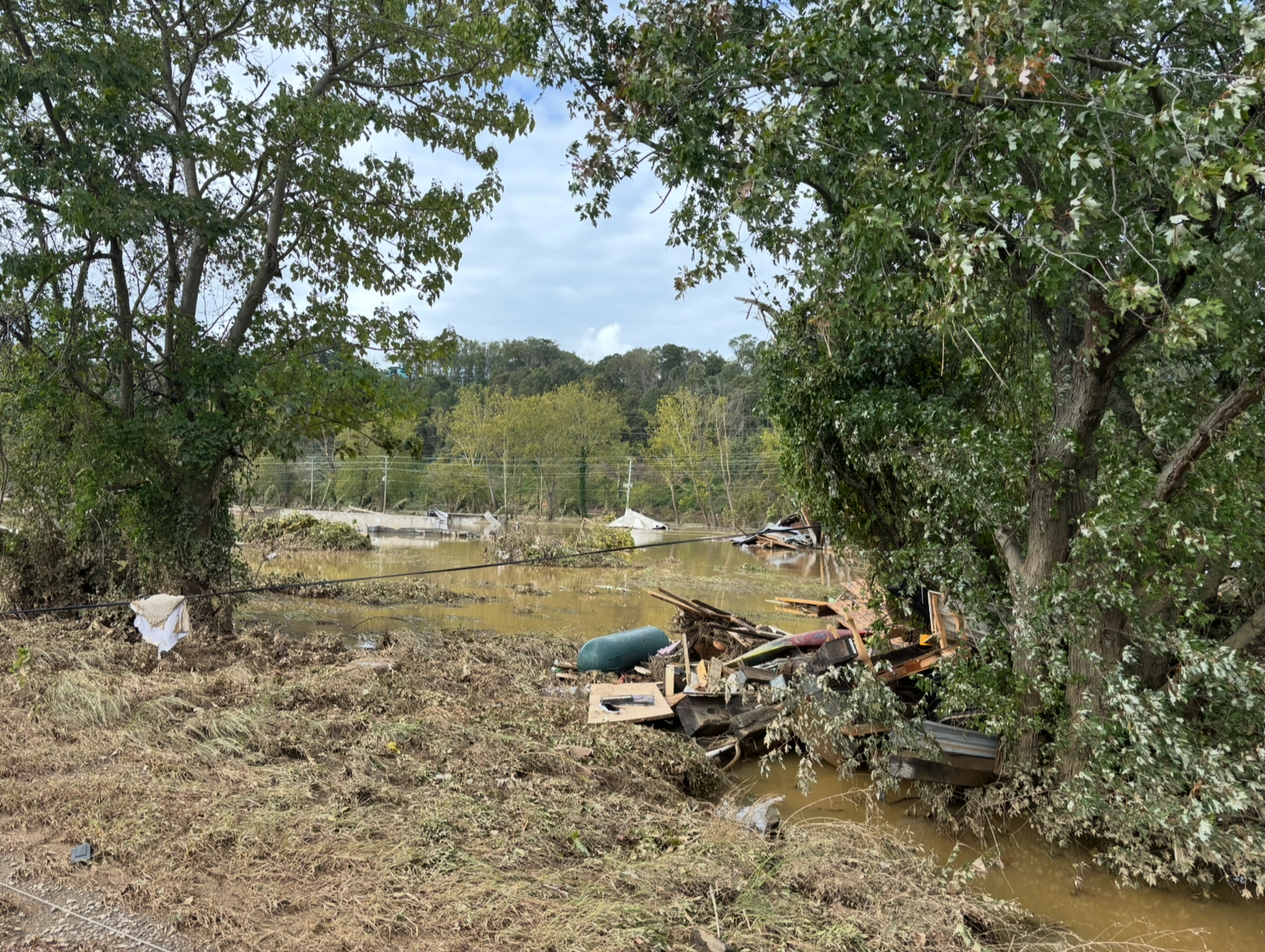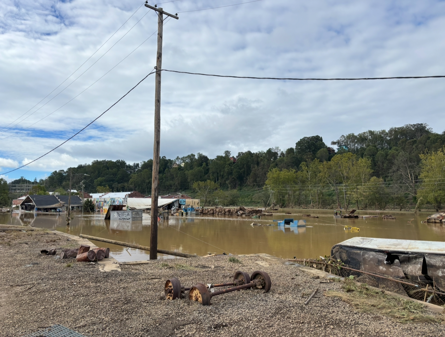 Asheville residents milled about the train tracks, covered in mud, talking quietly and scavenging for damaged artwork from their galleries.