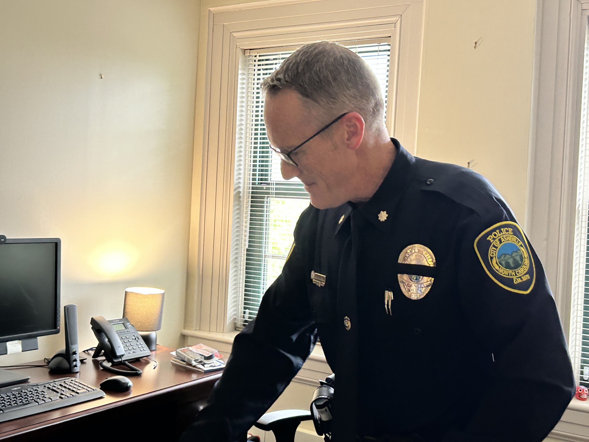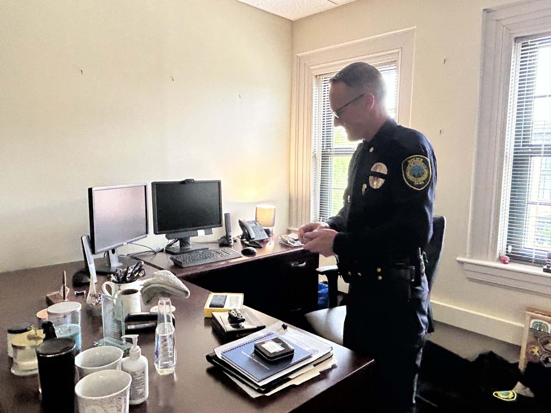 “Growing up, if anyone had asked me, ‘Are you going to be a police officer like your dad?’ I would have either laughed at them or said no,” he said while taking a break from moving into his new office.