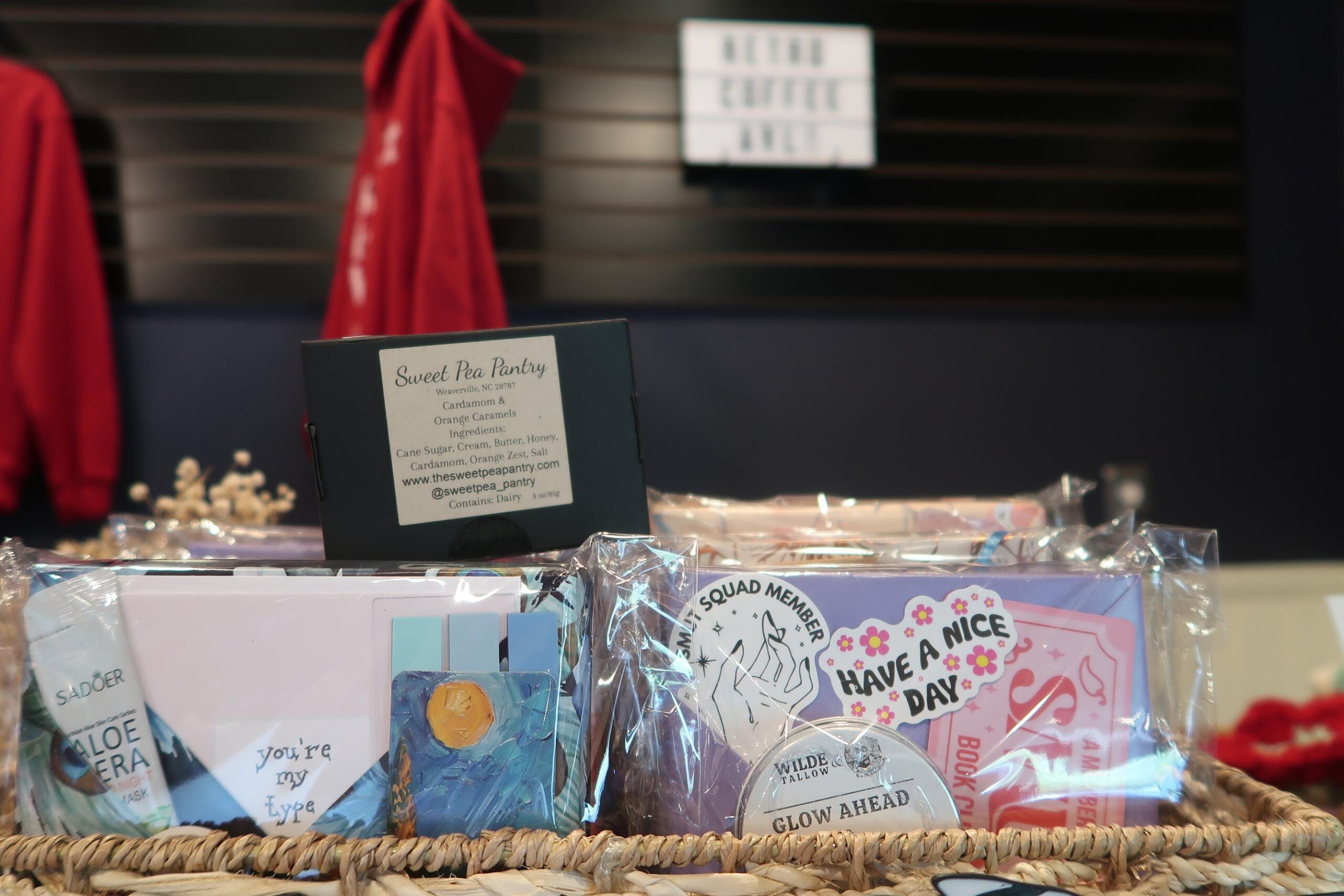 What makes Read Me Unconditionally special as a “blind date with a book” business are the bonus items. From teabags to caramels to embroidery, Simpson purchases small gifts from small vendors and includes them in her packages. Simpson has over 25 local businesses she promotes through Read Me Unconditionally, online and inside over 10 different WNC shops.