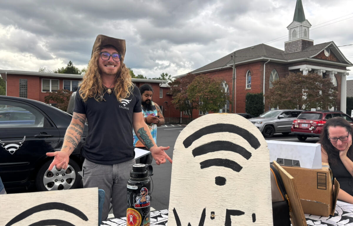 One of these is Taurus WiFi, a traveling wireless connection company. They had a station set up in the parking lot of Weaverville United Methodist Church.