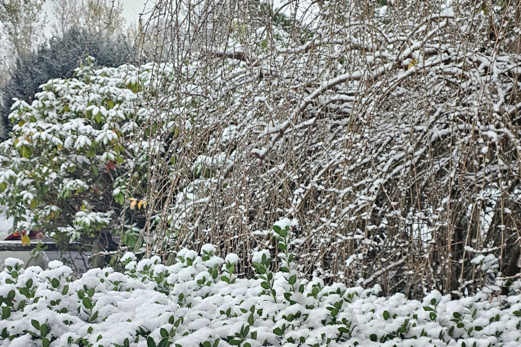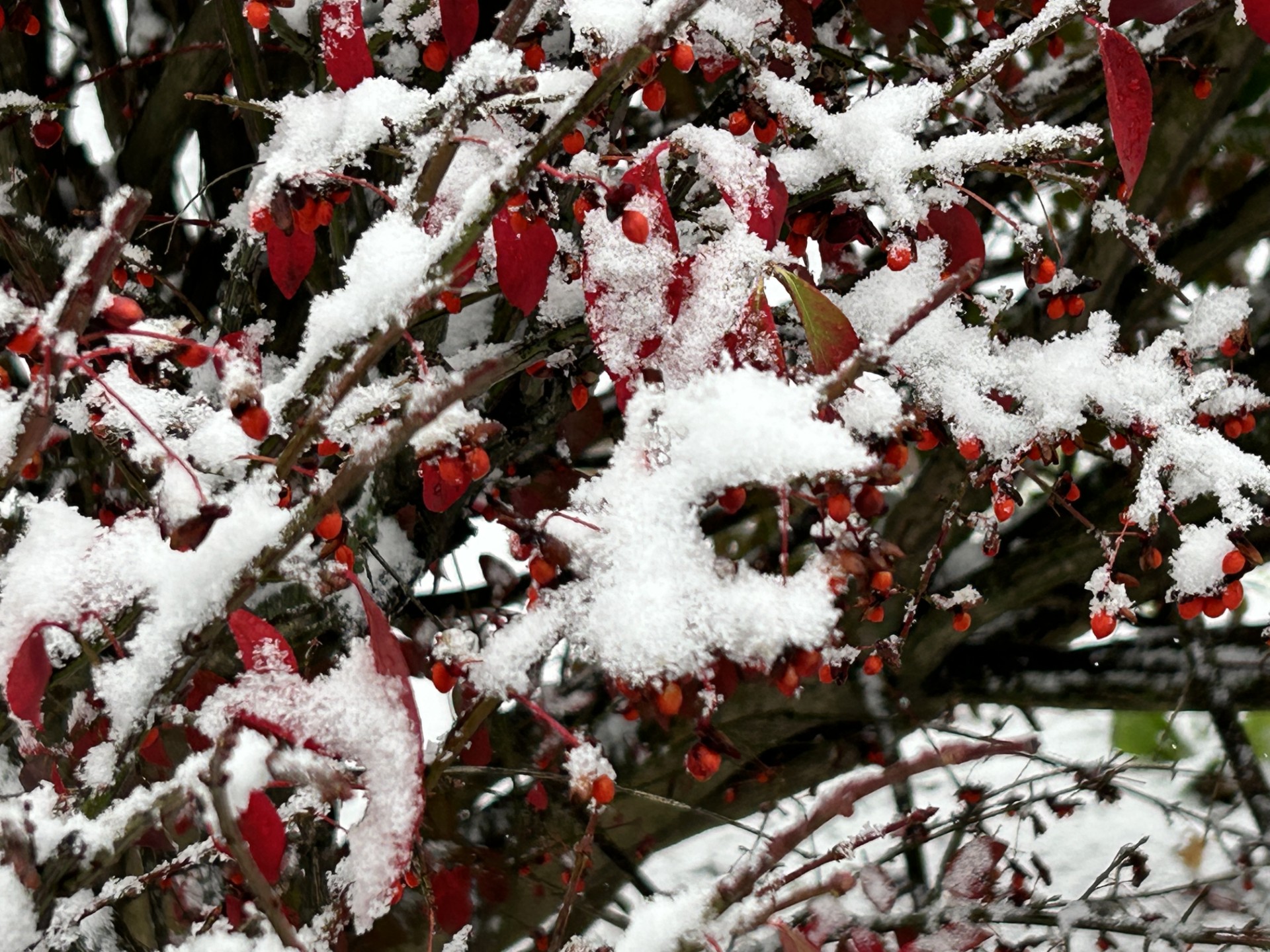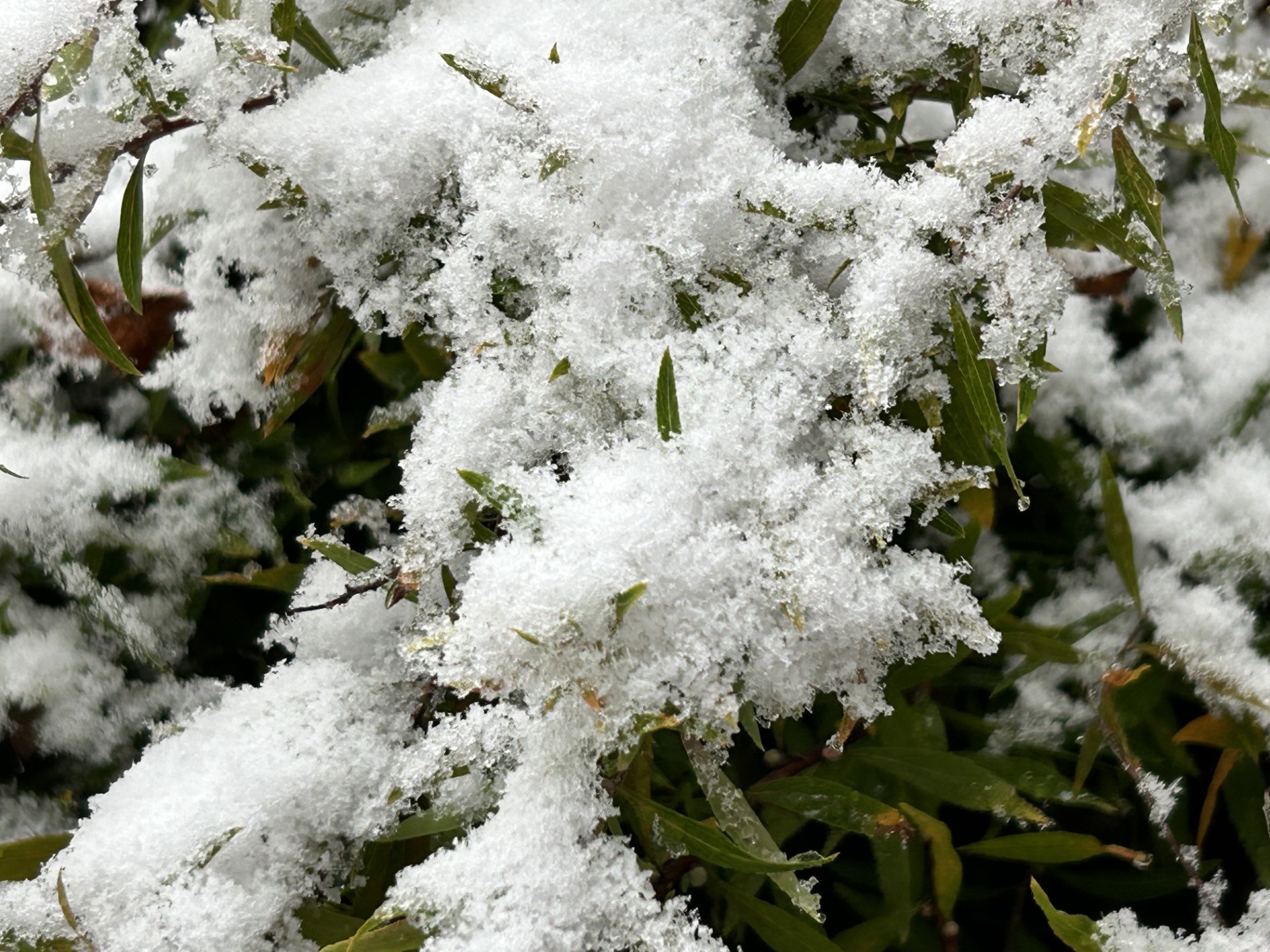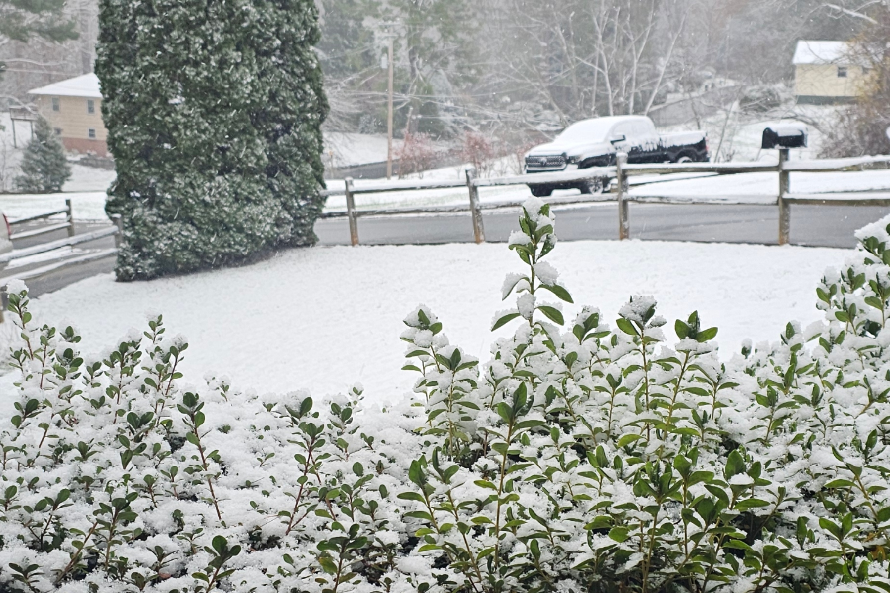 Snow that was falling as flurries earlier stepped up its game and quickly became bigger flakes that coated vehicles and roadways.