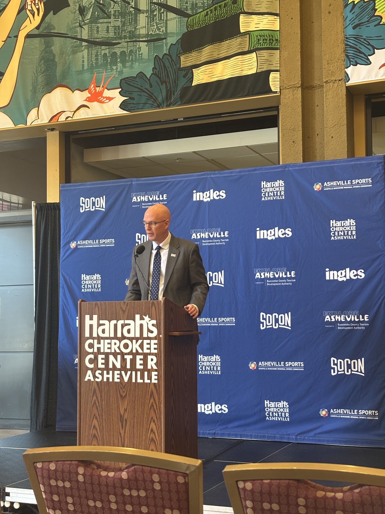 ASHEVILLE, N.C. (828newsNOW) — As the SoCon motto goes, “it’s all here.” The Ingles Southern Conference Basketball Championships will be held here in Asheville, at the Harrah’s Cherokee Center-Asheville arena, until 2035, officials announced at a press conference this morning.