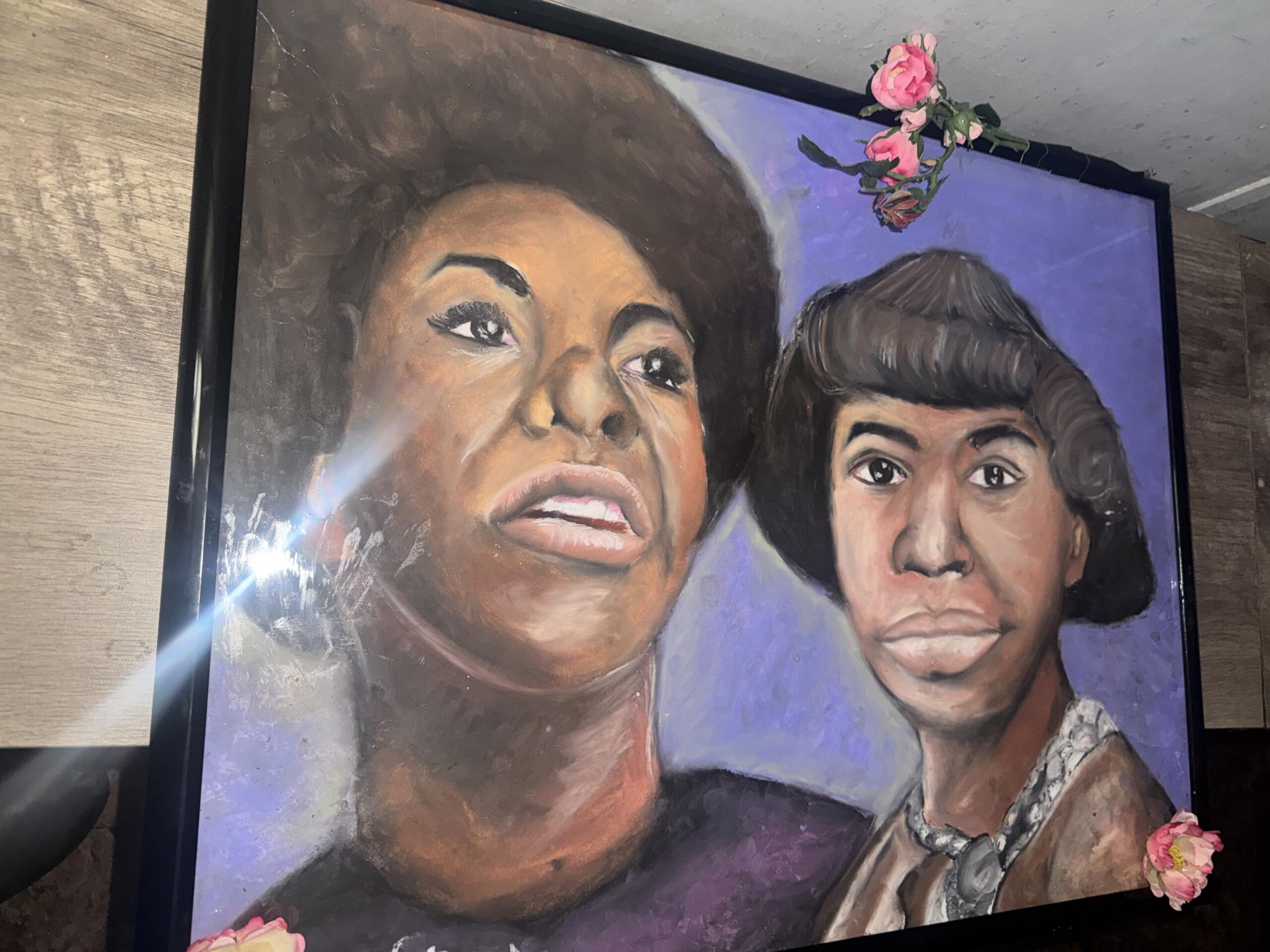 Simone, who was born in Tryon, is the latest figure Withinarts wanted to spotlight in his artwork. The artist painted the 22 inch by 28 inch oil pastel portrait, which depicts an older and younger Simone simultaneously, in just two days and framed it with flowers.