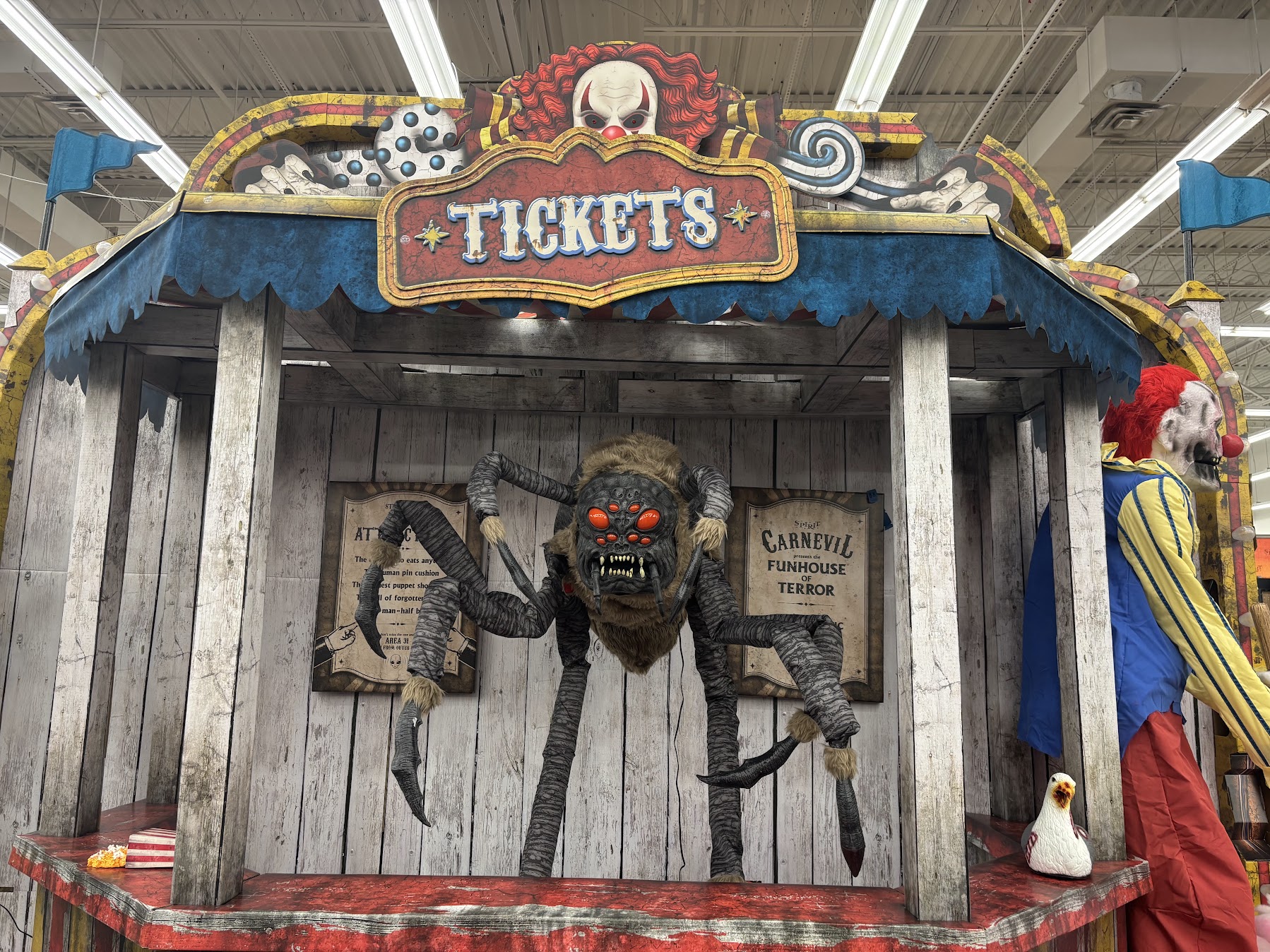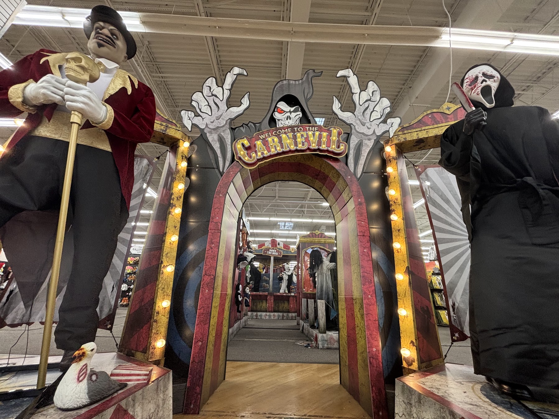 While Cipriano reigned as the queen of DIY Halloween, other customers milled around Spirit Halloween’s largest attraction. Every year, the brand selects a theme that the ISE, or In-Store Experience, will revolve around. Past ISEs have ranged anywhere from haunted cargo ships to clown-infested trains and incorporated various interactive animatronics into their displays. This year, the ISE is called “Carnevil,” and features a horror-themed carnival for visitors to enter on the showroom floor.