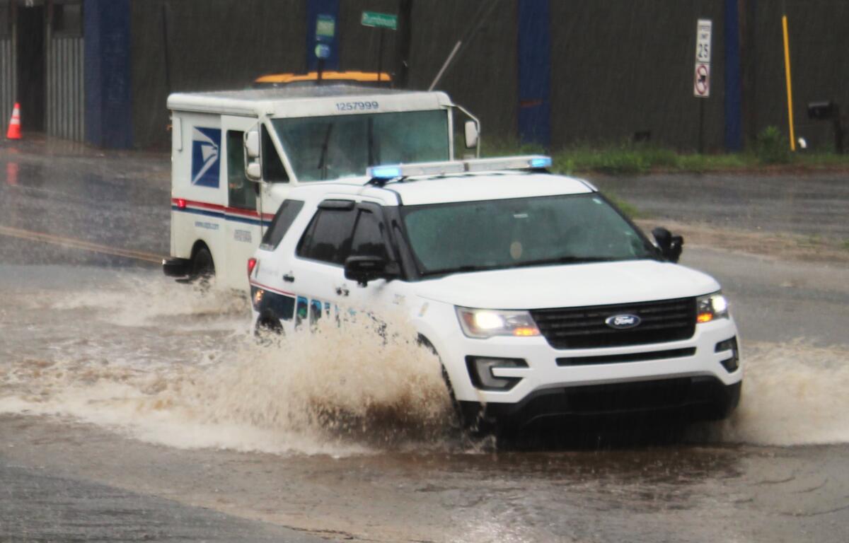 Darkened skies during deluges made for some tricky driving conditions on local roadways. Meanwhile, runoff from construction sites left a mess in some areas.