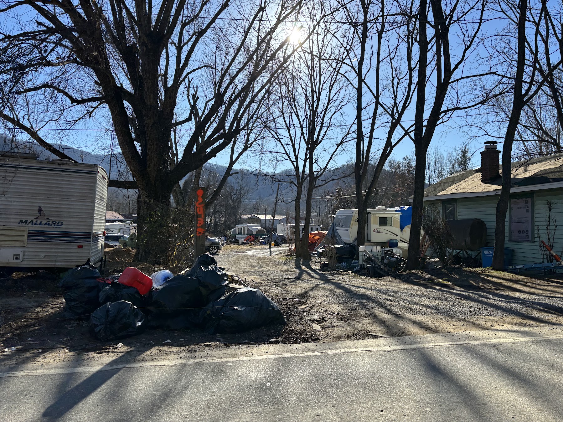 “River Lives Matter” declares a ruined outpost along the river in Swannanoa.