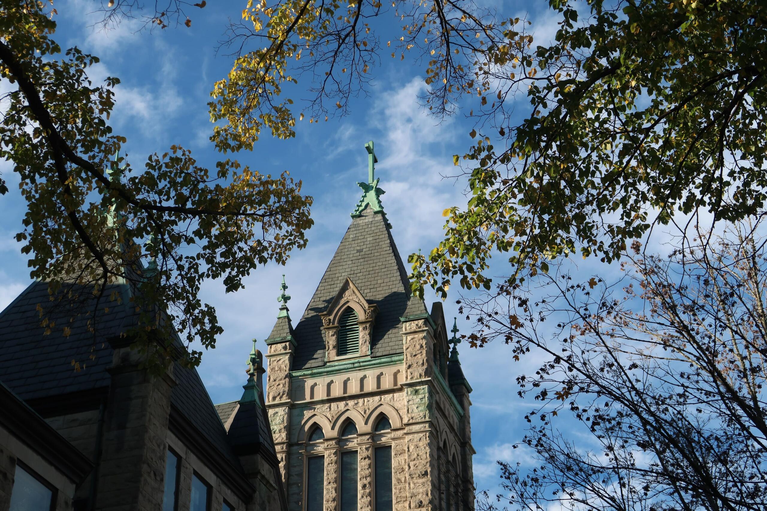 Central United Methodist Church and First Presbyterian Church sit directly across from each other on Church St. in downtown Asheville.