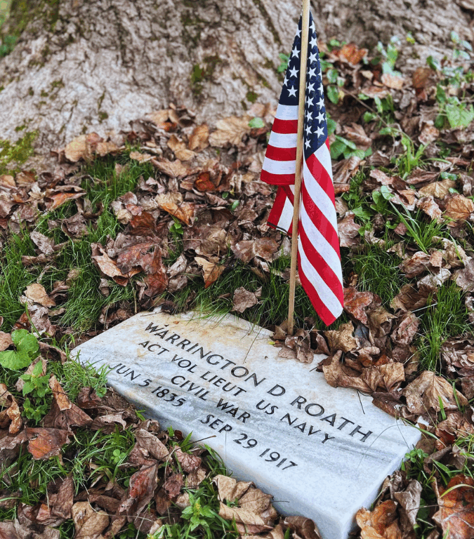ASHEVILLE, N.C. — On a quiet hill in Riverside Cemetery, a single white military headstone stands apart from the family plots and the long rows of veterans in another section of the cemetery. The marker is simple: Warrington D. Roath, Act Vol Lieut U.S. Navy Civil War.