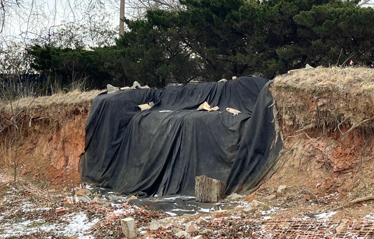 A tarp was laid over the graves to demarcate their location and protect them from damage. A retaining wall was supposed to be erected before further construction as a more permanent solution.
