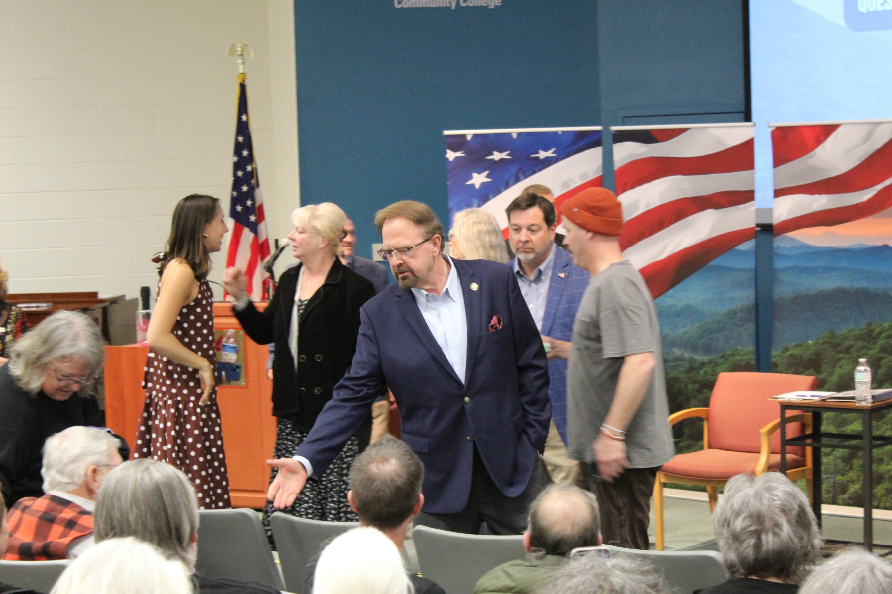 JR Stamey was born in St. Joseph's Hospital and was one of the first registered 18-year-olds in Buncombe County."Got drafted right over there in 68," he said while sitting in the crowd of people waiting to get into U.S. Rep. Chuck Edwards' town hall Thursday.