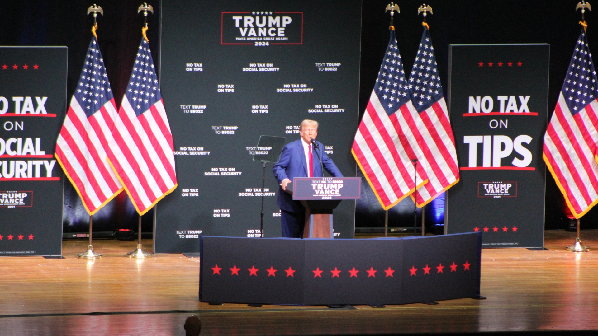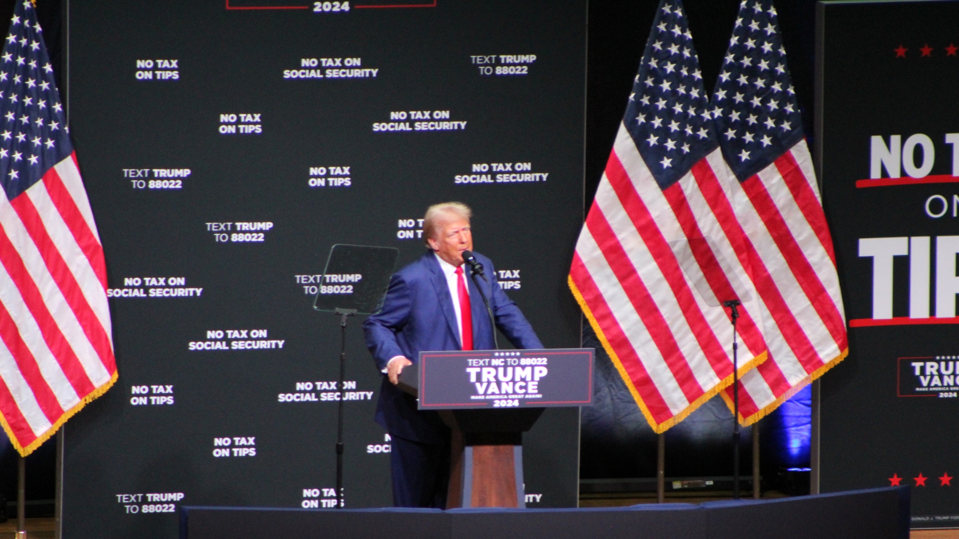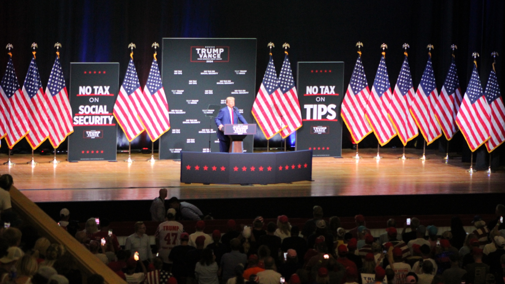 “There will be no tax on social security,” he said. “I will always protect Social Security and Medicare for our great seniors just as I did before.”