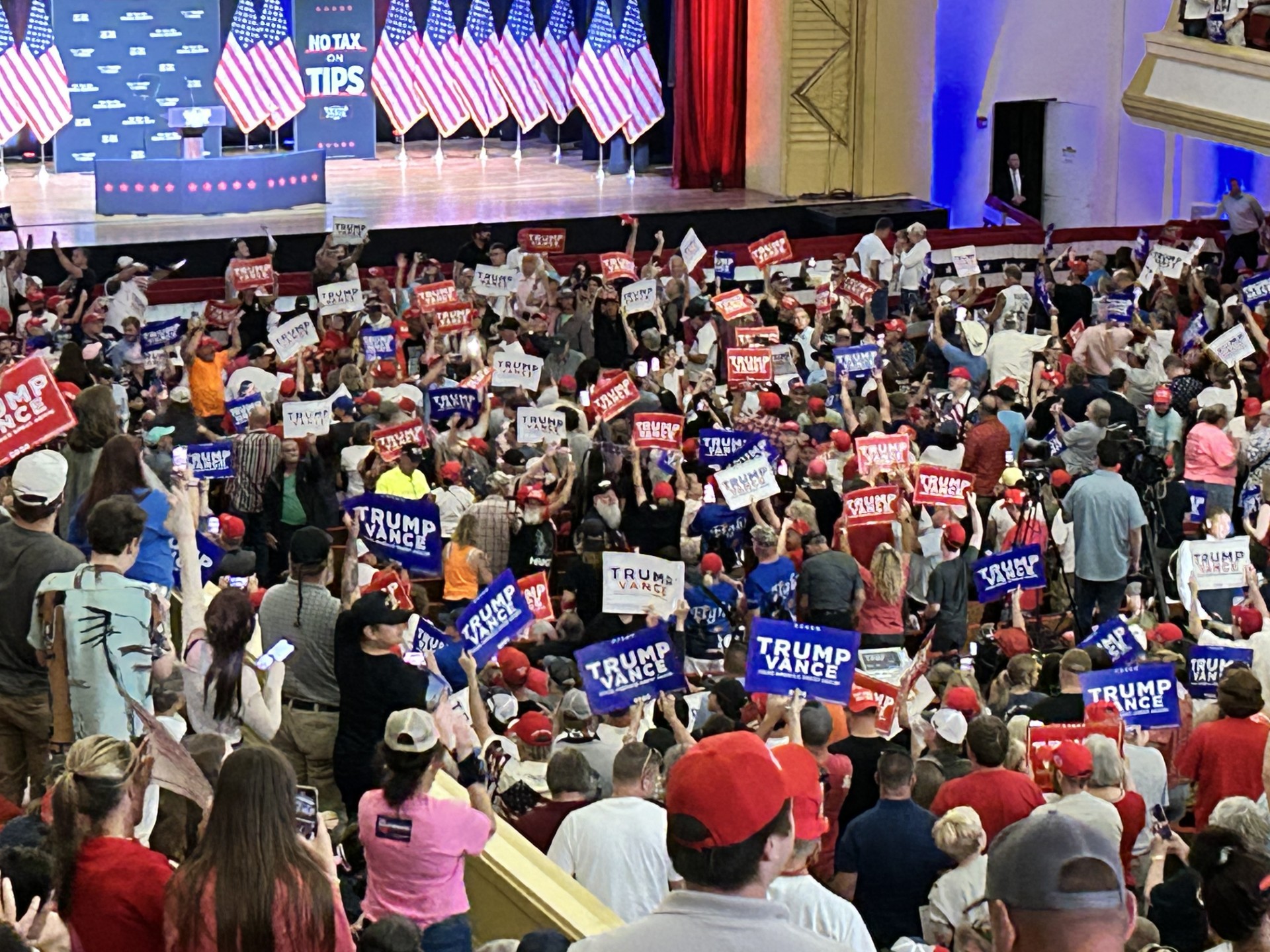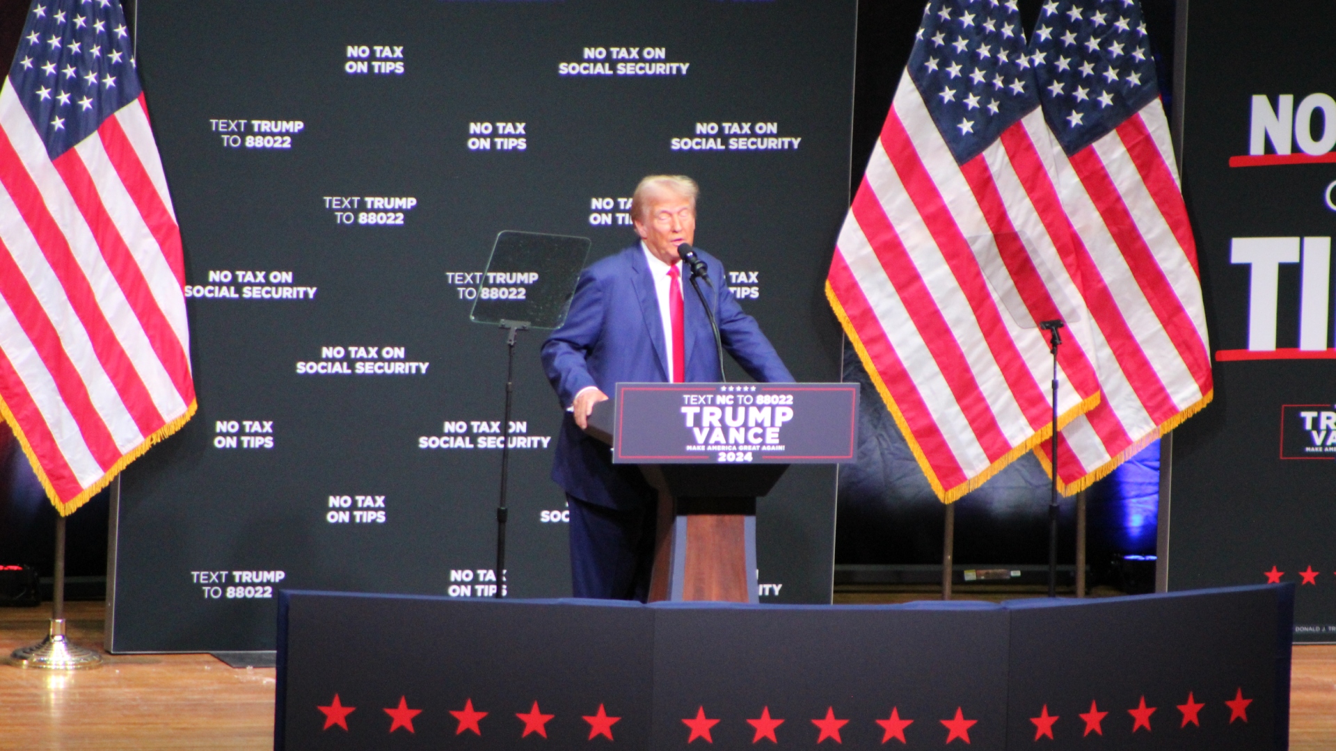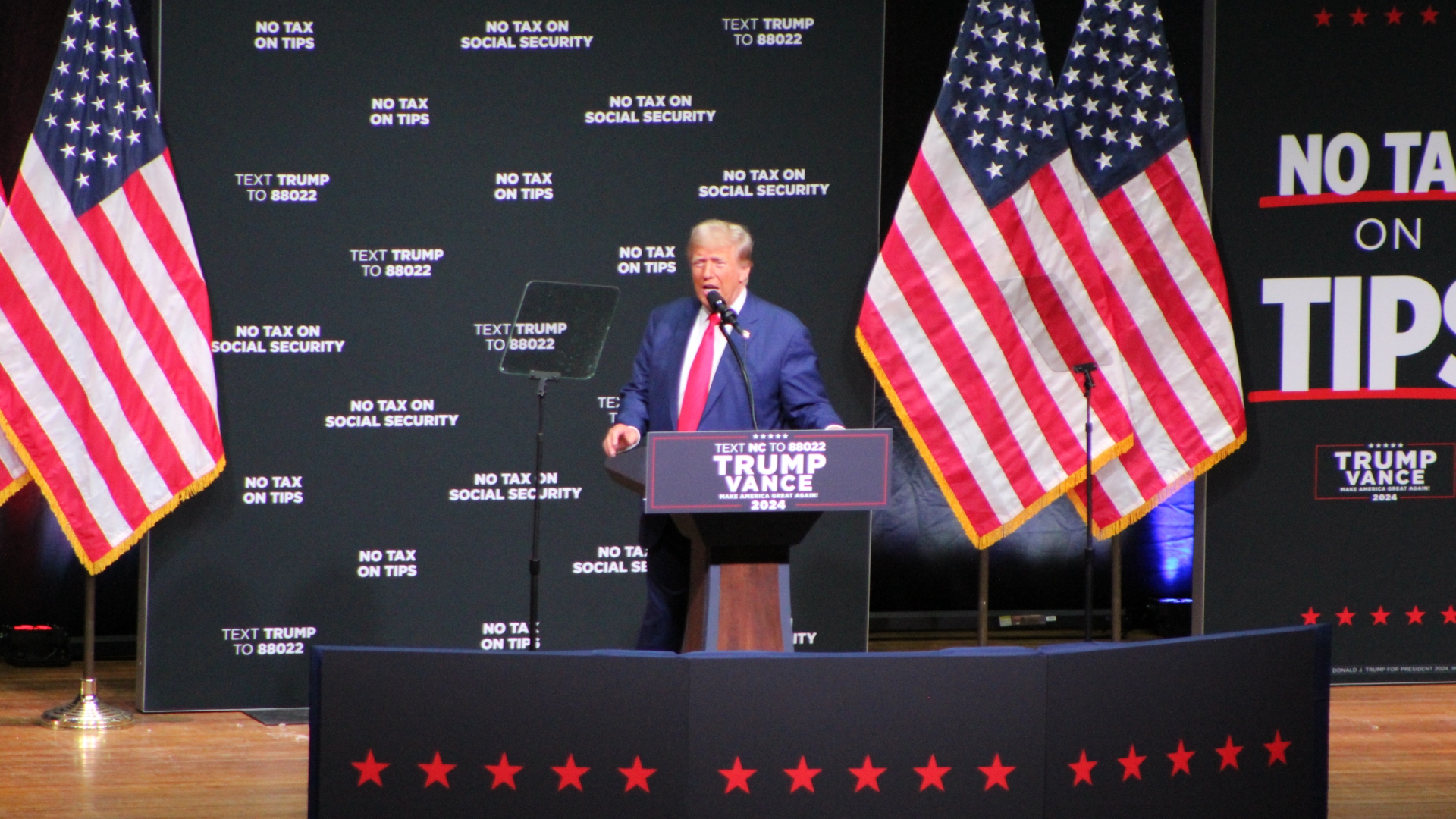 “There will be no tax on social security,” he said. “I will always protect Social Security and Medicare for our great seniors just as I did before.”
