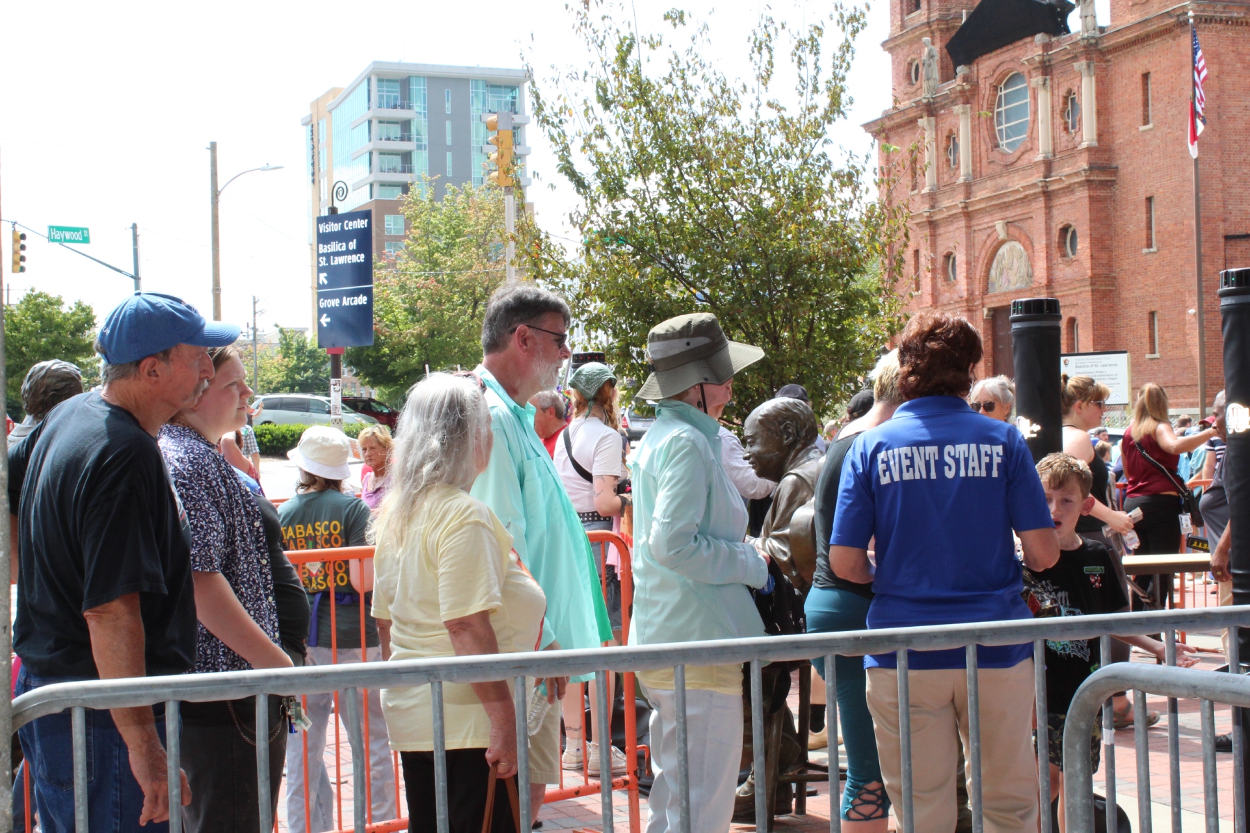 The first attendees began lining up outside the arena around 11:30 a.m., with the crowd growing steadily by 1 p.m.