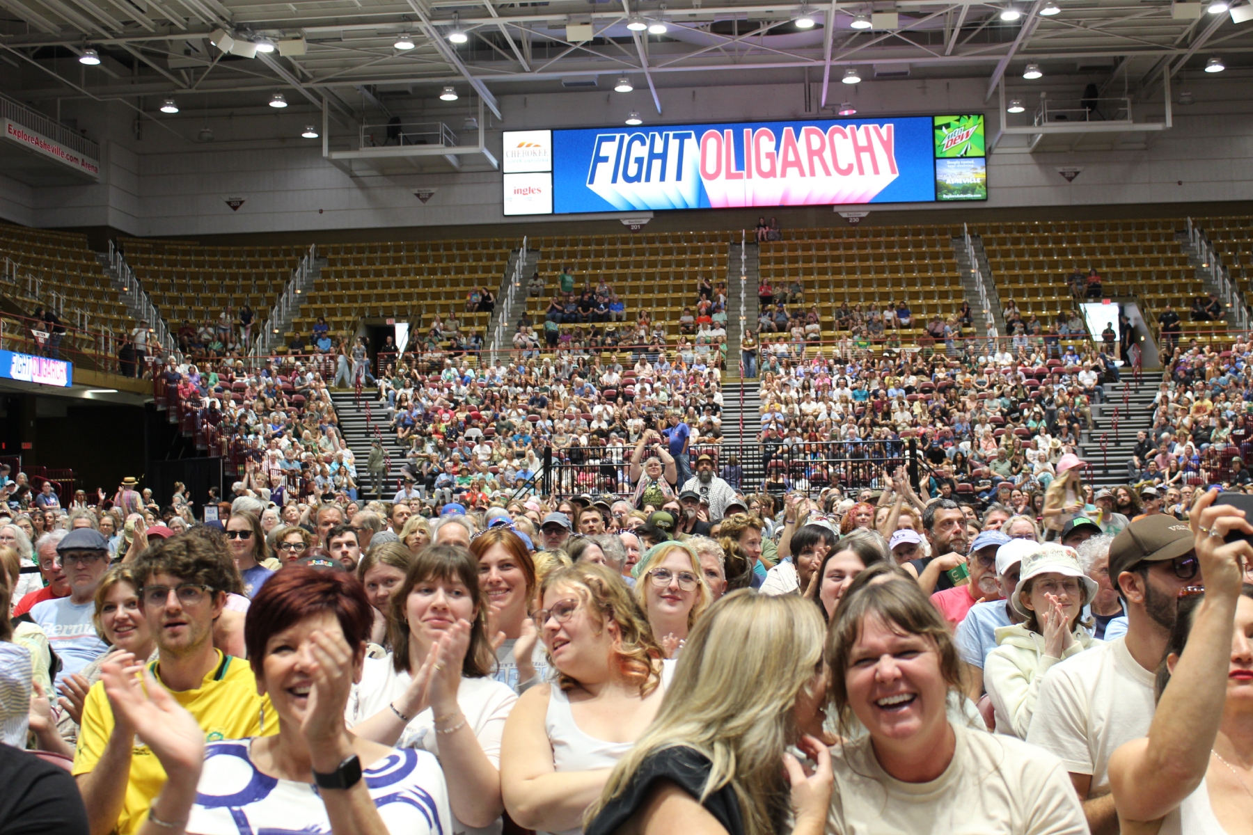 ASHEVILLE, N.C. (828newsNOW) — Calling for a renewed fight against economic inequality, U.S. Sen. Bernie Sanders of Vermont brought his “Fighting Oligarchy: Where We Go From Here” tour to Asheville on Sunday, drawing a crowd that wrapped around the Harrah’s Cherokee Center — Asheville.