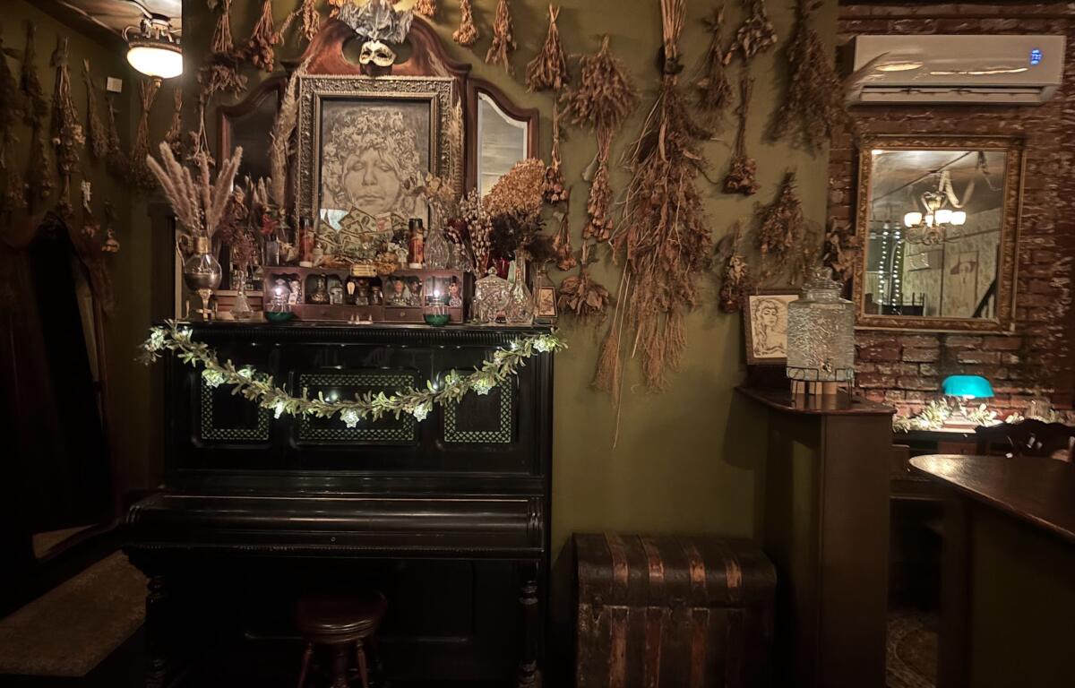 Crow & Quill is a curio in the downtown Asheville bar scene, open from 5 p.m. to midnight in its dimly-lit, atmospheric parlors. While located off of North Lexington Avenue, a stretch of downtown Asheville known for its night life, Crow & Quill keeps its storefront lowkey: there is no signage on the outside to indicate its opulent interior other than an antique-appearing pair of street lamps.
