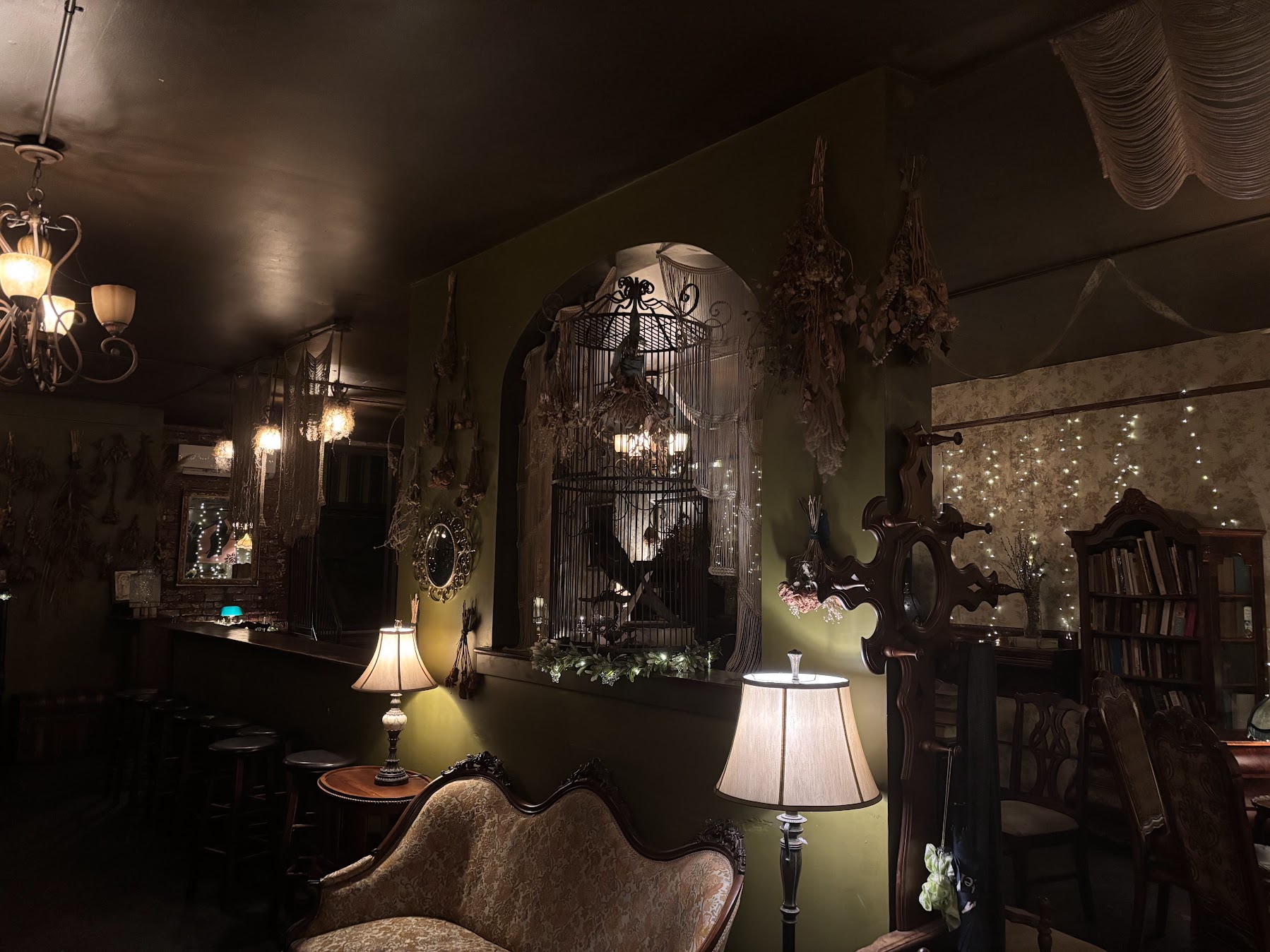 Crow & Quill is a curio in the downtown Asheville bar scene, open from 5 p.m. to midnight in its dimly-lit, atmospheric parlors. While located off of North Lexington Avenue, a stretch of downtown Asheville known for its night life, Crow & Quill keeps its storefront lowkey: there is no signage on the outside to indicate its opulent interior other than an antique-appearing pair of street lamps.