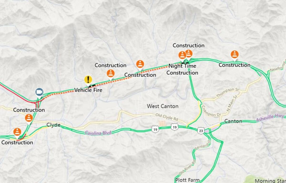 According to traffic incident reports, the eastbound lanes of I-40 near mile marker 28.5, close to the Great Smoky Mountains Expressway and Clyde, were closed following the fire.