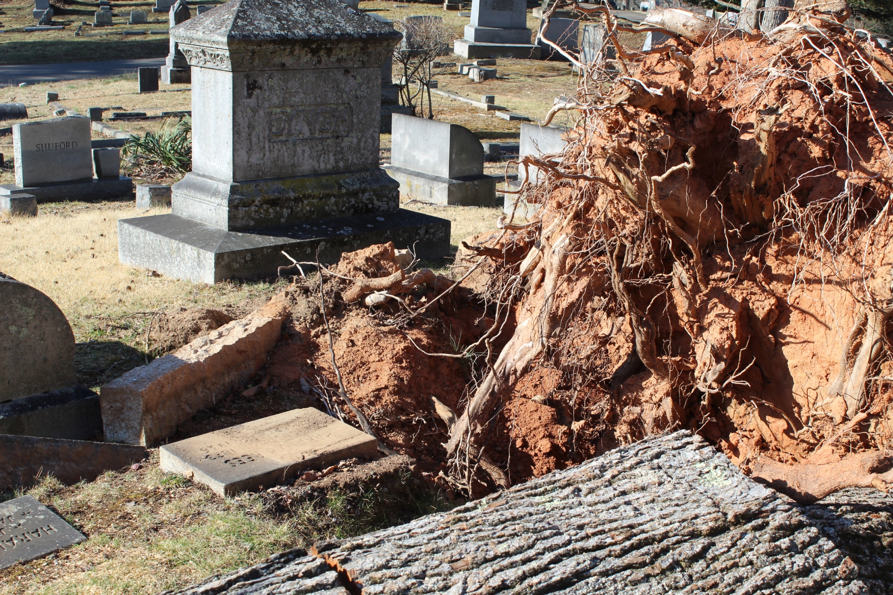 Part of the bigger problem at the cemetery, Riggs said, is the tree roots. Even if the trees didn’t damage the graves, the roots may have grown into the site.