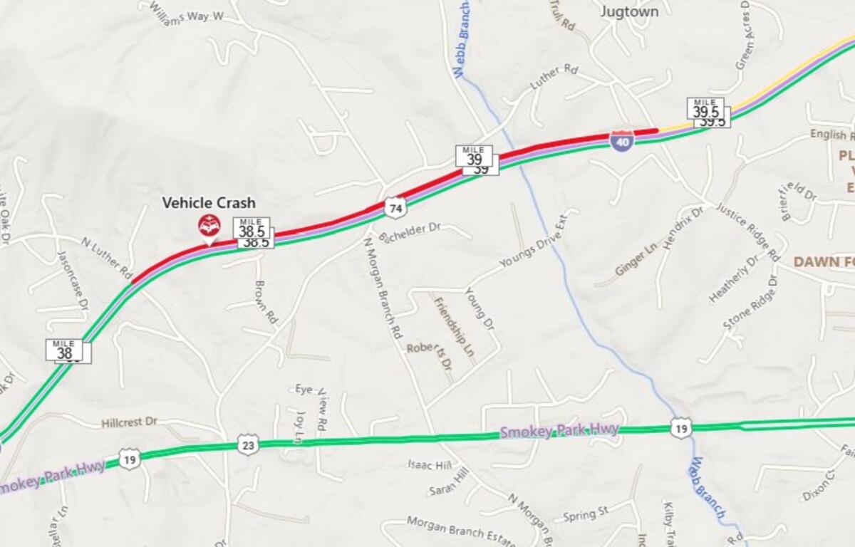 CANDLER, N.C. (828newsNOW) — A crash on Interstate 40 near Wiggins Road in Buncombe County closed one of the left westbound lanes late Tuesday morning, causing significant traffic disruptions.