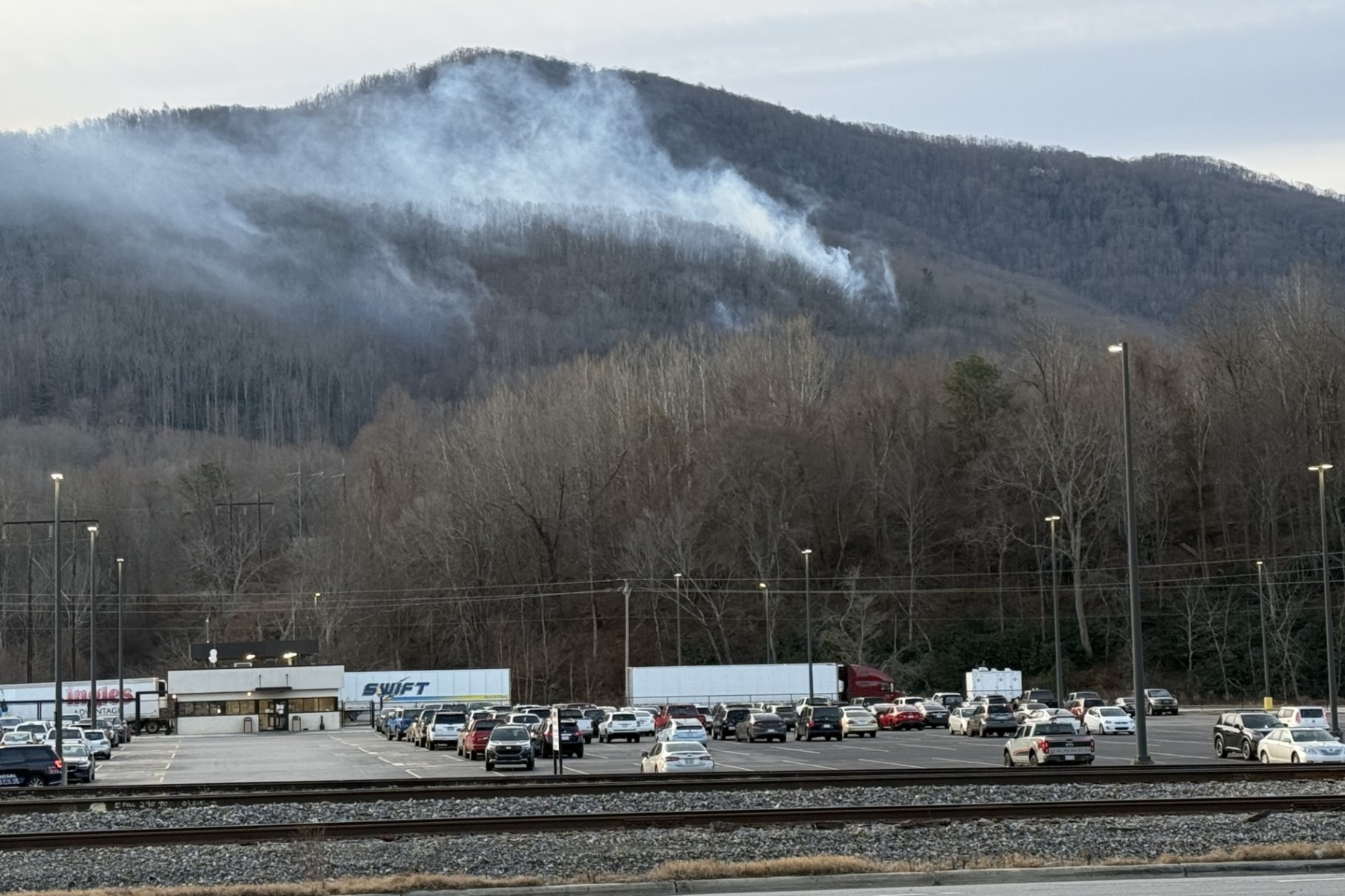 Officials said the wildfire was located on a mountain above the Ingles warehouse in Swannanoa. Fire lines were in place, and officials expected the fire to continue to die down over the next 24 hours.