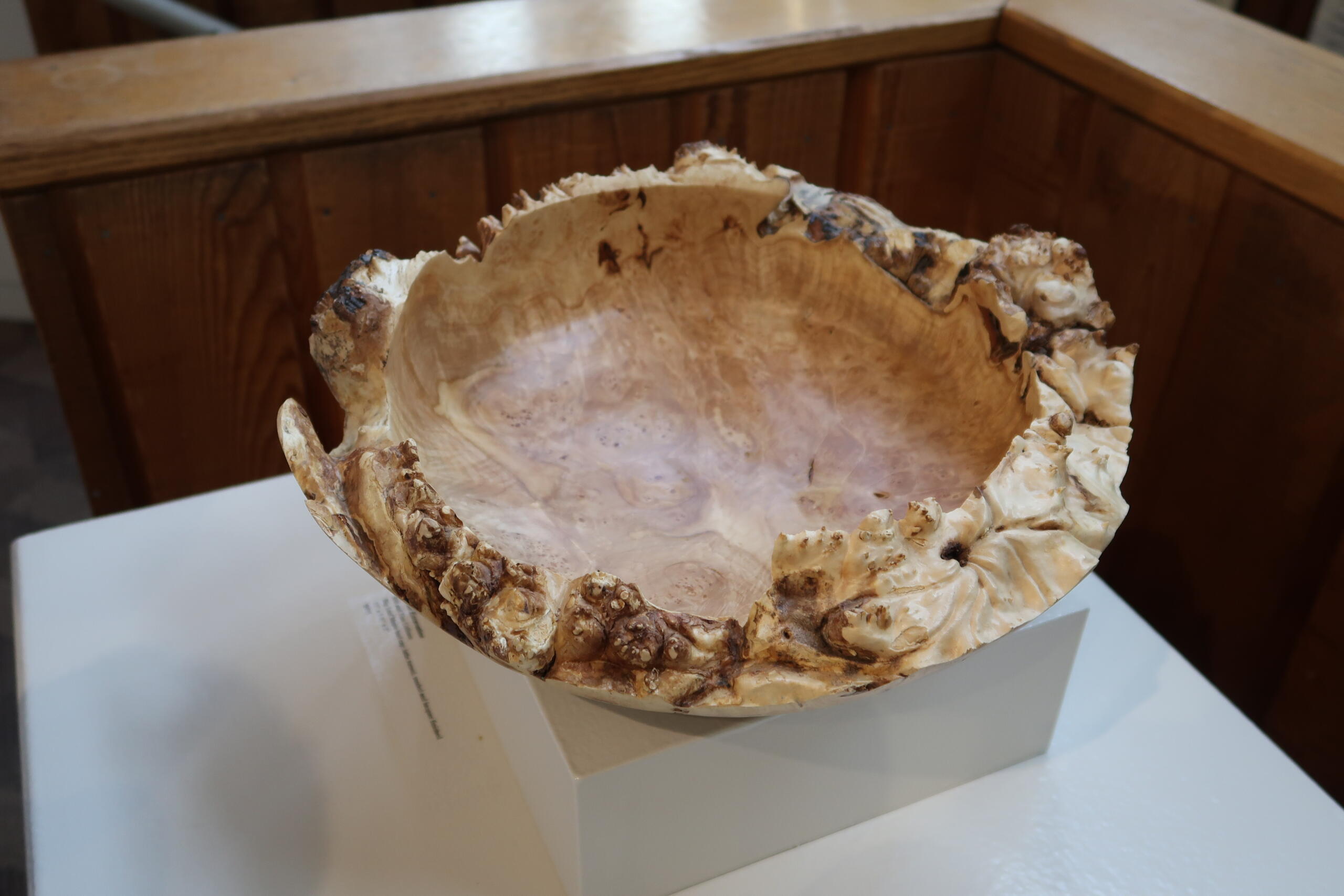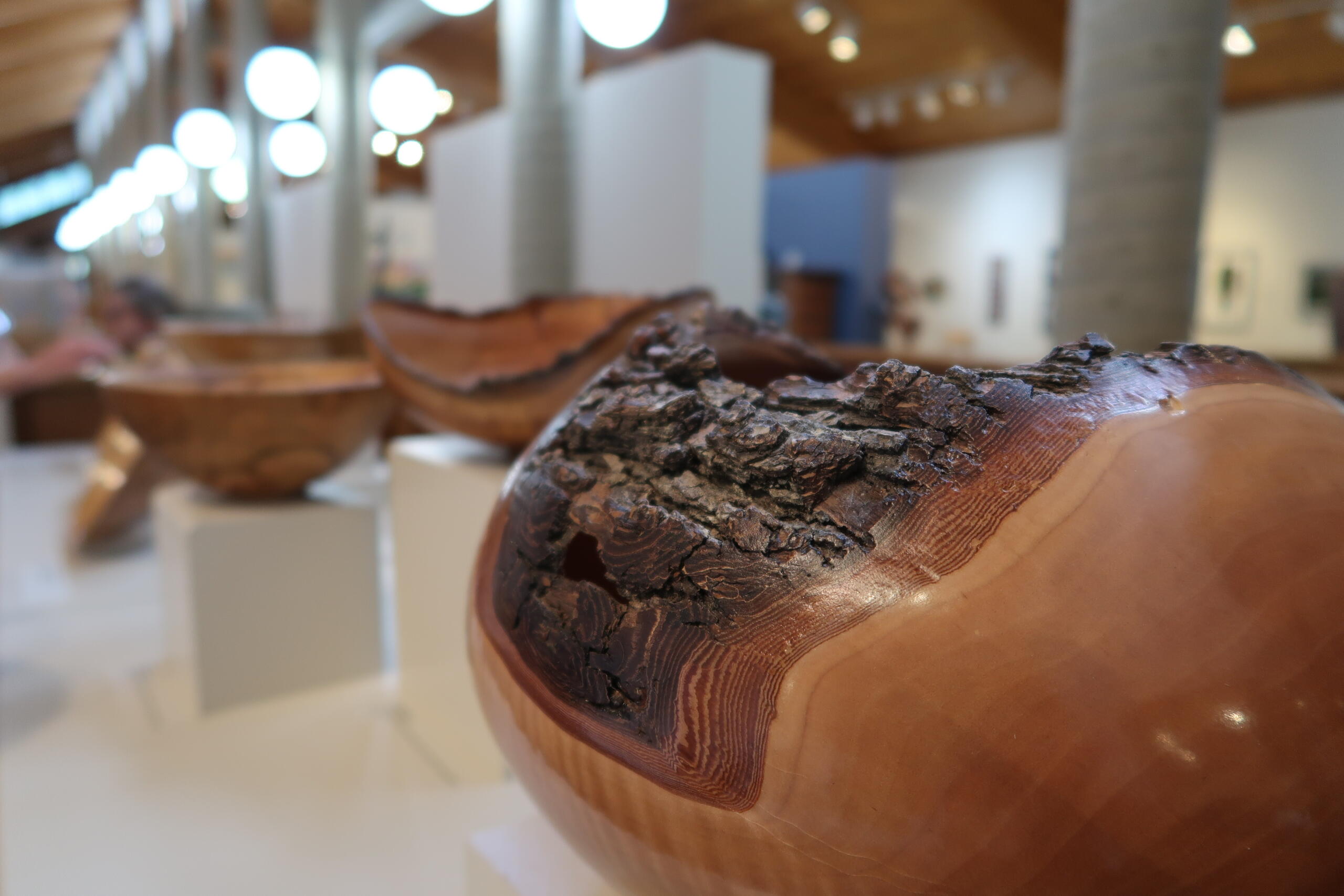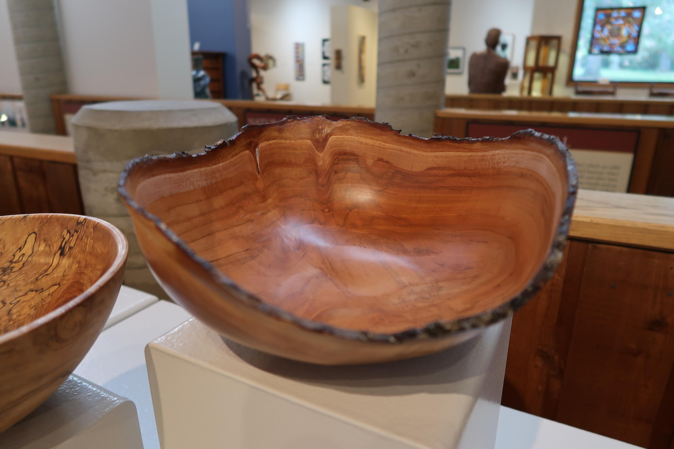 One of those traditions is wood-turning, the process of chipping away at blocks of wood with the use of a lathe. Bowls are an especially common wood-turning subject, with several on display at the Folk Art Center.